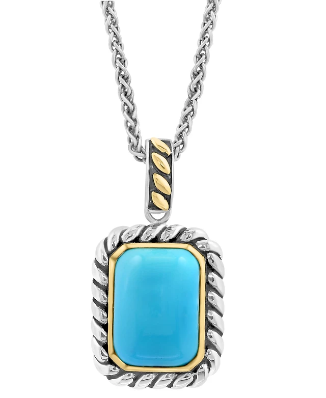 Effy Turquoise (14 x 10mm) Rope Framed 18" Pendant Necklace in Sterling Silver & 14k Gold-Plate