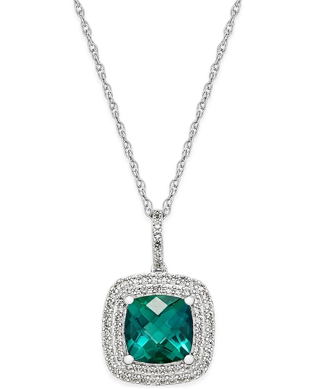 Lab-Grown Emerald (1-3/4 ct. t.w.) and White Sapphire (1/4 ct. t.w.) Teardrop Pendant Necklace in Sterling Silver