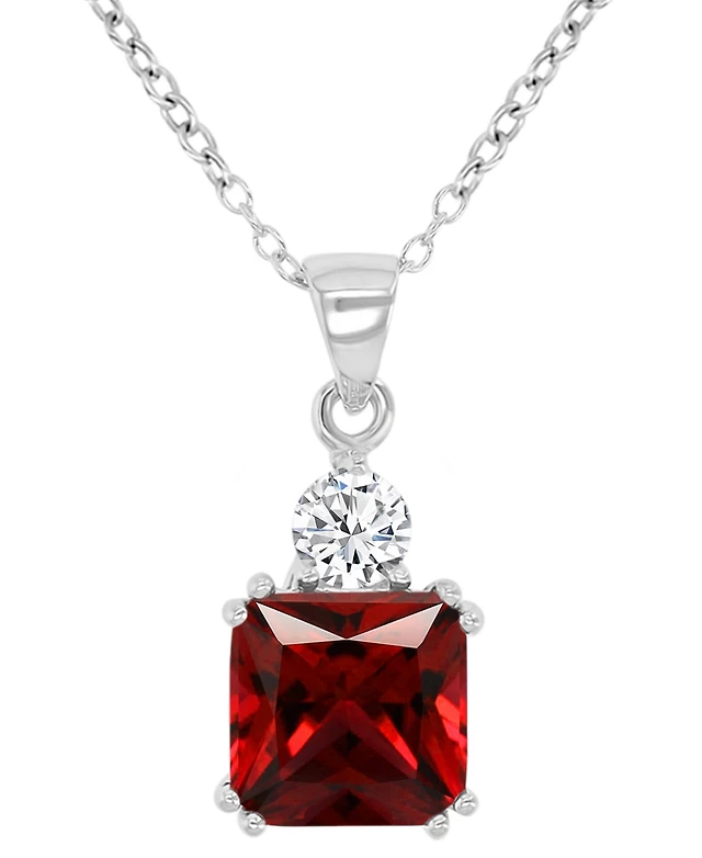 Garnet & White Lab-Created Sapphire Necklace Sterling Silver 18"