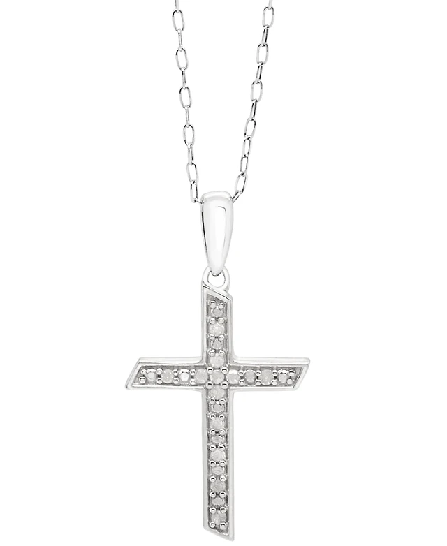 Round-Cut Diamond Paperclip Cross Necklace 1/10 ct tw Sterling Silver & 10K Yellow Gold 18”