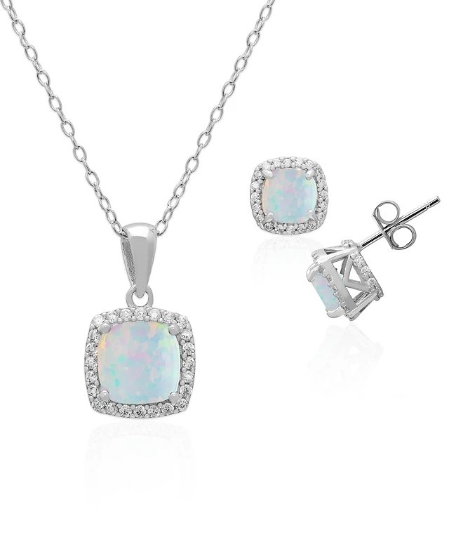 2-Pc. Set Diamond (1/6 ct. t.w.) Square Cluster Pendant Necklace & Matching Stud Earrings in Sterling Silver