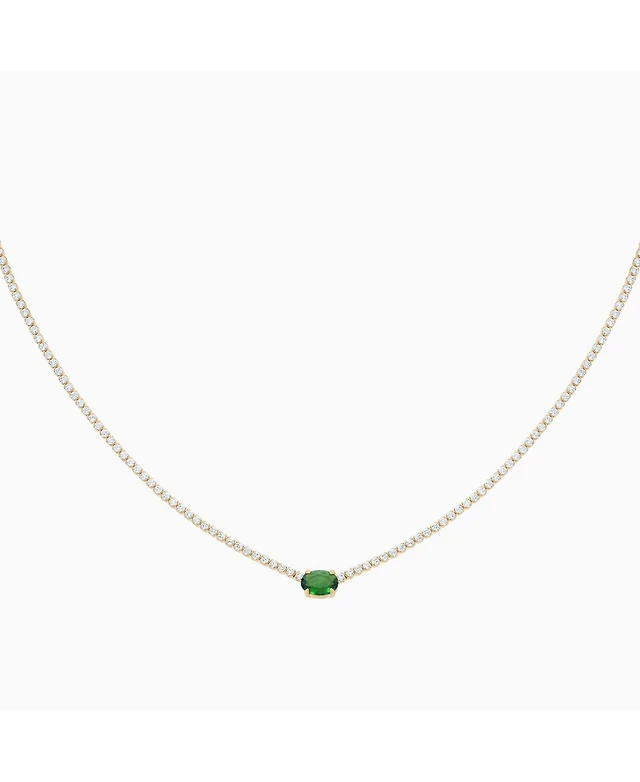 Sterling Silver 14K Gold Plated Necklace with Colored Cubic Zirconia Heart