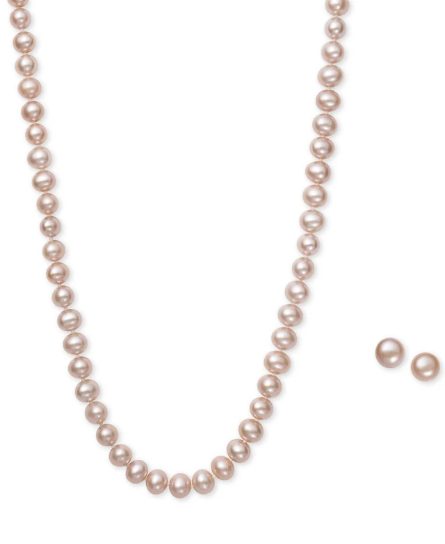 Cultured Freshwater Pearl Necklace (7-7 1/2mm) and Drop Earrings (7x9mm) Set Sterling Silver