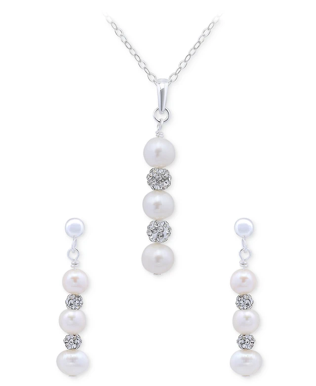 3-Pc. Set Pink Cultured Freshwater Pearl (6-8mm) Beaded Double-Row Strand Necklace, Stretch Bracelet & Stud Earrings Sterling Silver