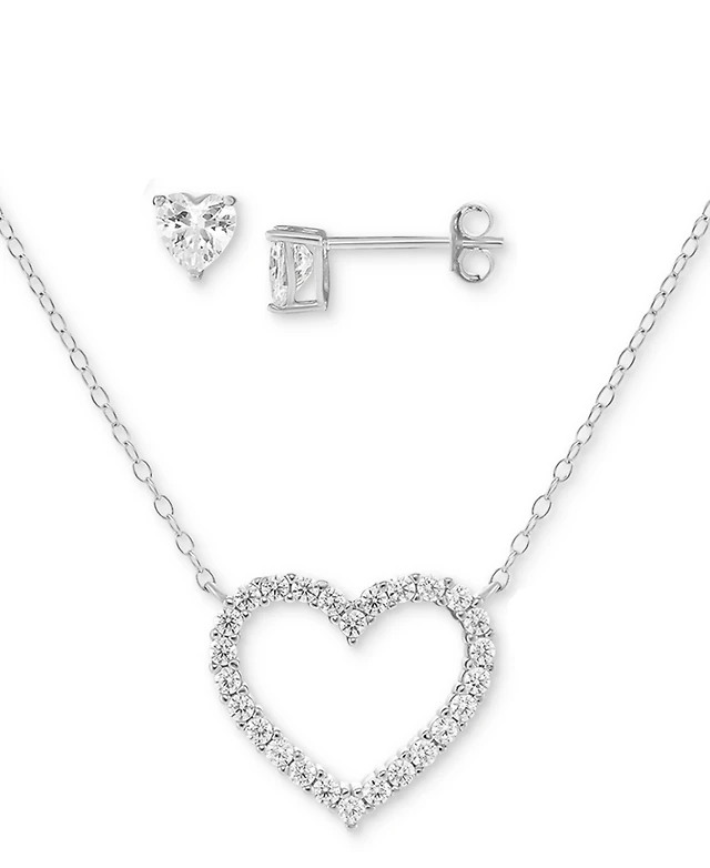 Giani Bernini 2-Pc. Set Cubic Zirconia Open Heart Pendant Necklace & Solitaire Stud Earrings in Sterling Silver, Created for Macy's