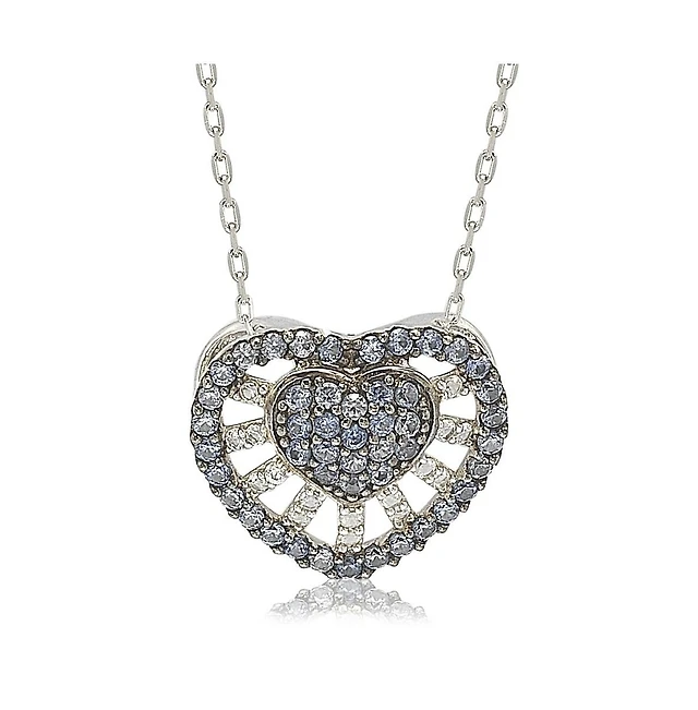 Suzy Levian Sterling Silver Cubic Zirconia Pave Mini Heart Pendant Necklace