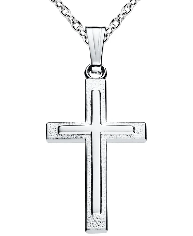 Men's Solid Embossed Cross 22" Pendant Necklace in Sterling Silver