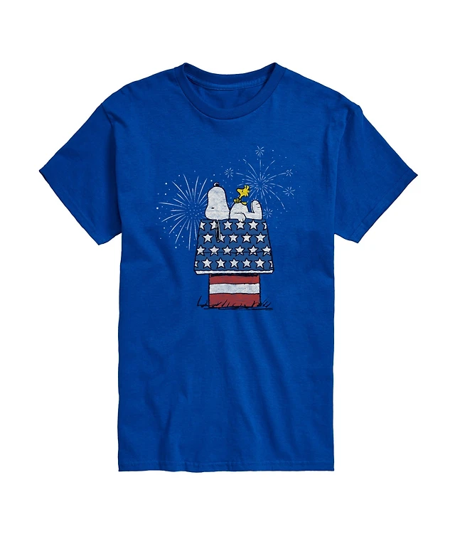 Airwaves Men's Peanuts Snoopy Flag Fireworks Short Sleeve T-Shirt