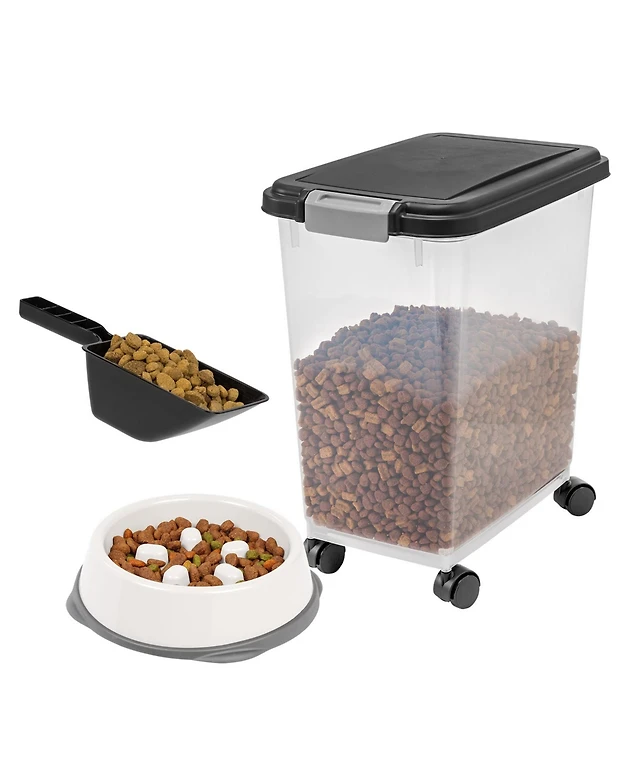 Iris Usa 30Lbs Airtight Dog Food Storage Container with 2-Cup Scoop and Slow Feeder Bowl Combo, Black