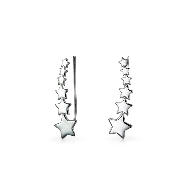 Bling Jewelry Usa Patriotic Celestial Shooting Star Ear Pin Climbers Earrings Wrap Crawlers 14K Gold Plated .925 Sterling Silver