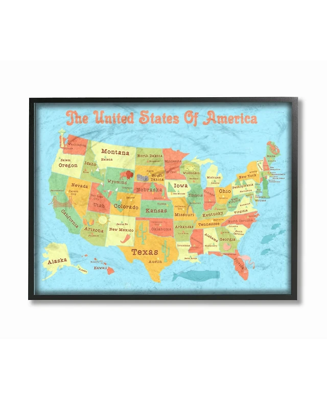 Stupell Industries United States of America Usa Kids Map Framed Giclee Art, 11" x 14"