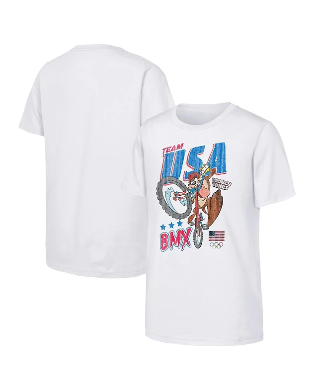 Outerstuff Big Boys and Girls Tasmanian Devil White Team Usa Looney Tunes Bmx T-Shirt