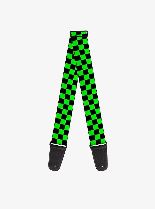 Guitar Strap Checker Black Neon Green