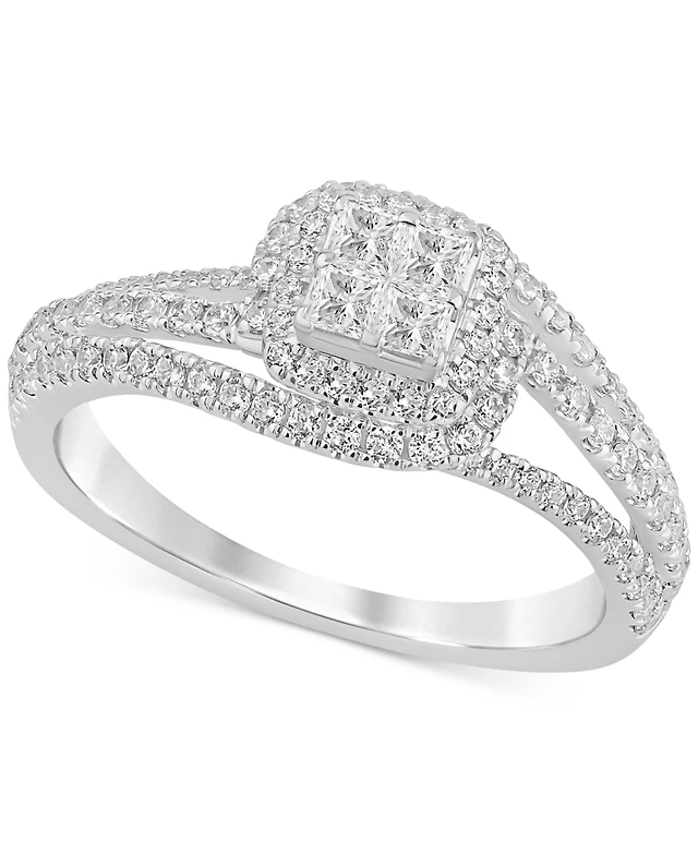 TruMiracle Diamond Princess Shaped Halo Cluster Engagement Ring (1 ct. t.w.) in 10k White Gold