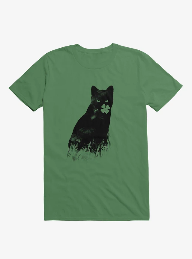 Ambivalence Cat & Clover Kelly Green T-Shirt