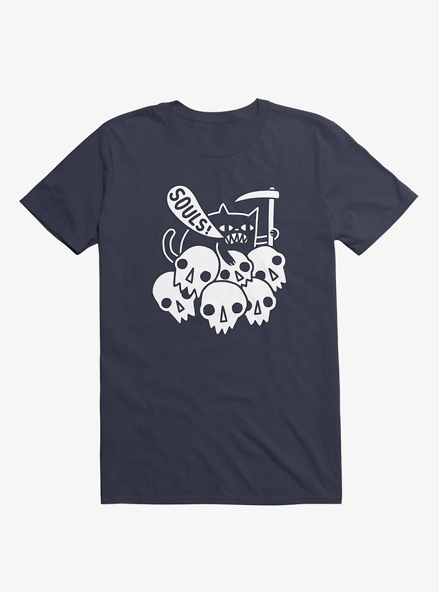 Cat Got Your Soul? Skulls Navy Blue T-Shirt