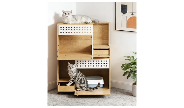 gaomon Double Room Cat Litter Box Enclosure for 2 Cats, Hidden Litterbox Furniture with Scratch Posts and Double-Layer Mat