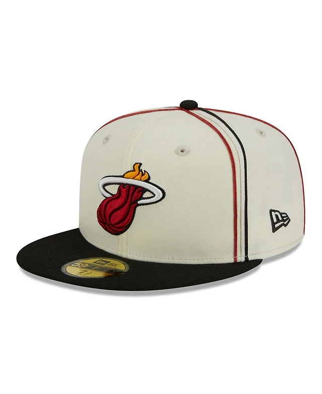 Men's New Era Cream, Black Miami Heat Piping 2-Tone 59FIFTY Fitted Hat
