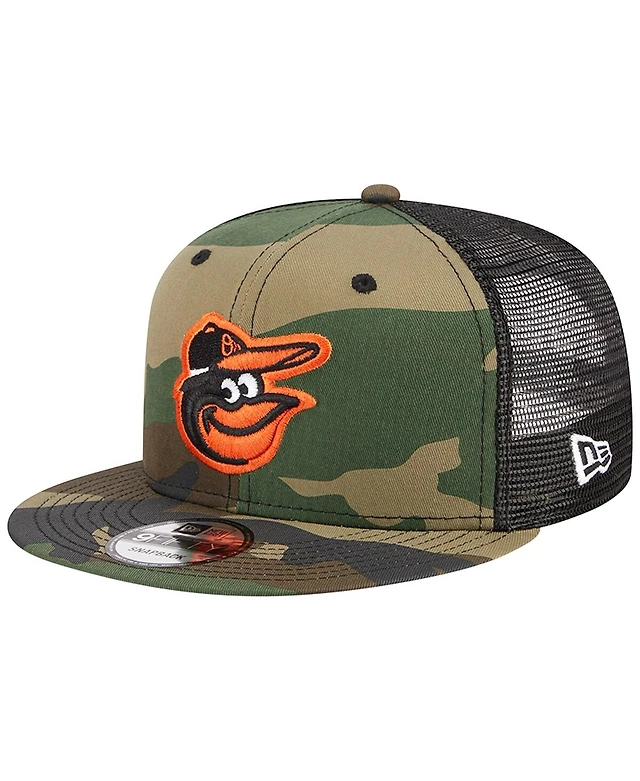 Men's New Era Camo Baltimore Orioles Woodland Camo Trucker 9FIFTY Snapback Hat