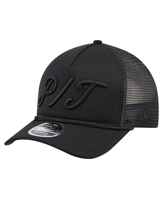 New Era Men's Black Pittsburgh Pirates City Initial 9FORTY A-Frame M-Crown Adjustable Trucker Hat