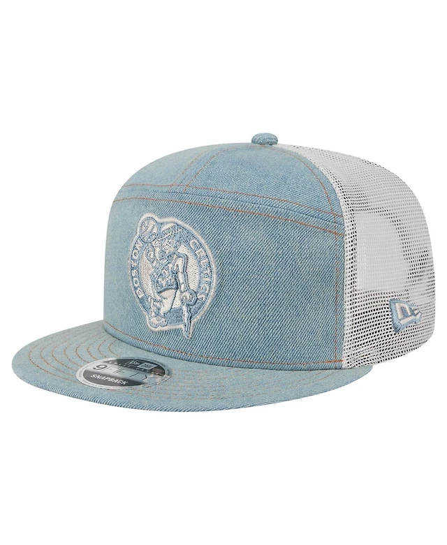 New Era Men's Boston Celtics Adventure Denim Split Panel 9FIFTY Snapback Trucker Hat