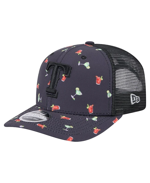 New Era Men's Black Texas Rangers Adventure Drinks Pattern 9SEVENTY Stretch-Snap Hat