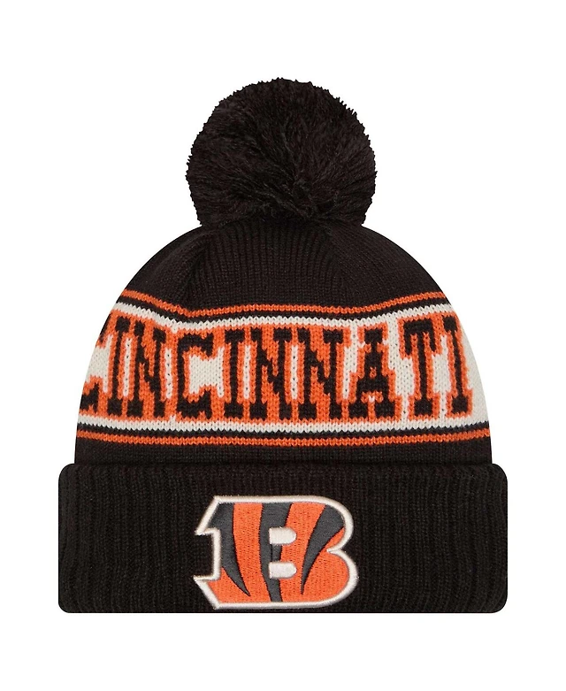New Era Big Boys and Girls Black Cincinnati Bengals Retro Cuffed Knit with Pom Hat
