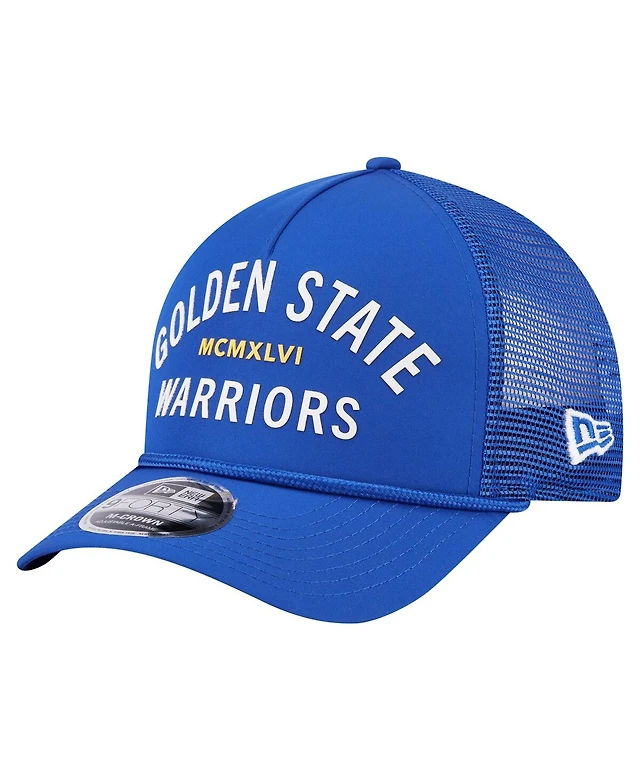 New Era Men's Royal Golden State Warriors Minimalist A-Frame 9FORTY Trucker Hat