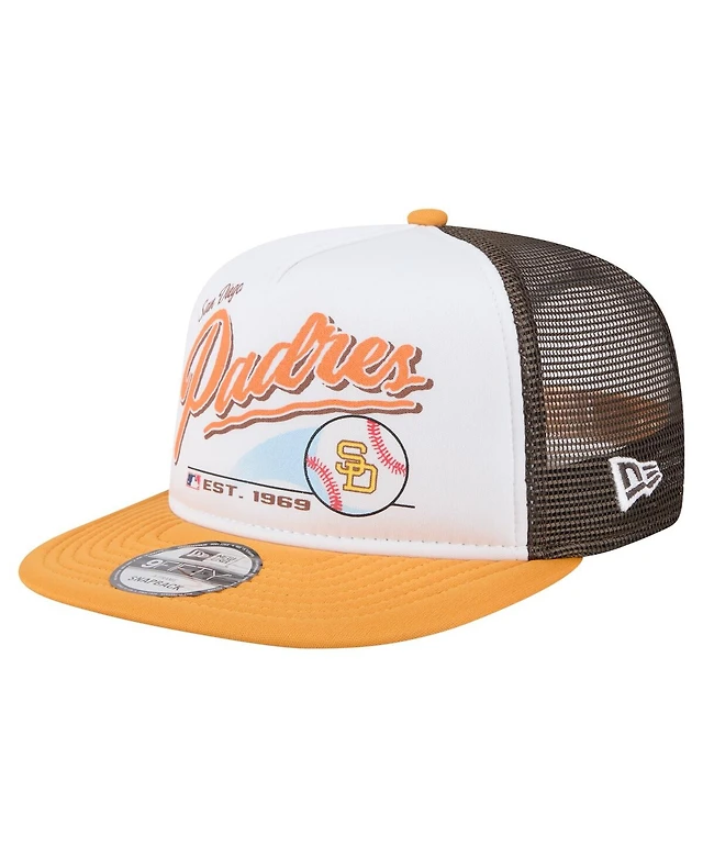 New Era Men's White/Gold San Diego Padres Retro Script Trucker 9FIFTY Snapback Hat