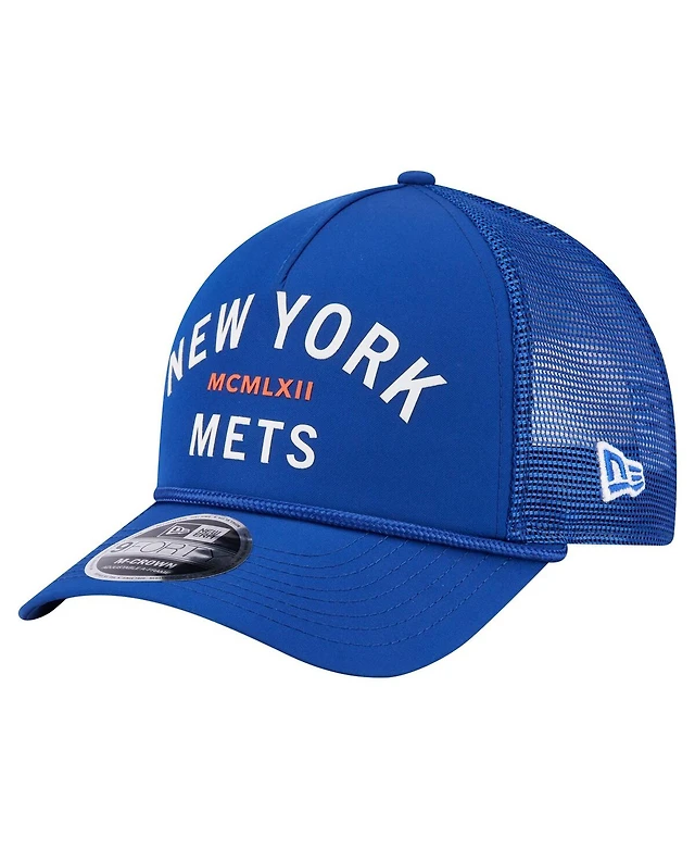 New Era Men's Royal New York Mets Split Panel 9FIFTY Trucker Snapback Hat