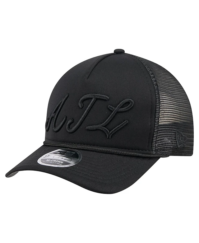 New Era Men's Black Atlanta Braves City Initial 9FORTY A-Frame M-Crown Adjustable Trucker Hat