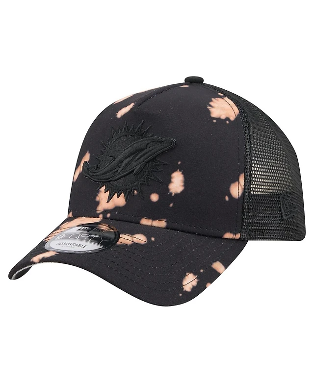 New Era Men's Black Miami Dolphins Bleached 9FORTY A-Frame Adjustable Hat