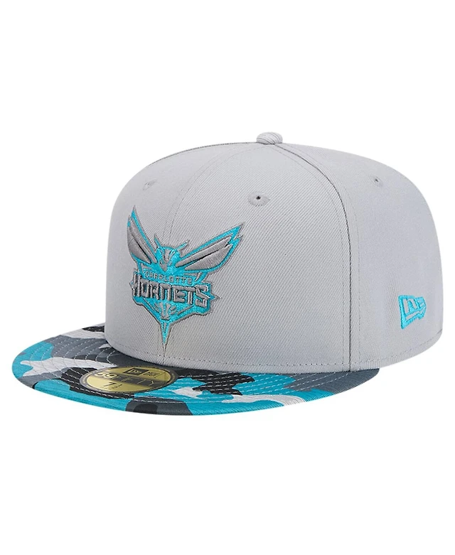 Men's New Era Gray Charlotte Hornets Active Color Camo Visor 59FIFTY Fitted Hat