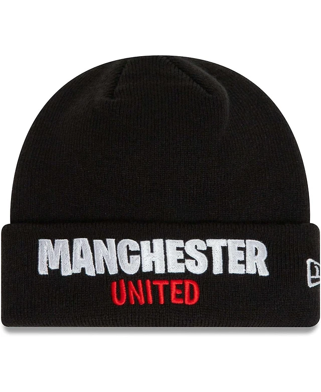 Youth Boys and Girls New Era Black Manchester United Wordmark Cuffed Knit Hat