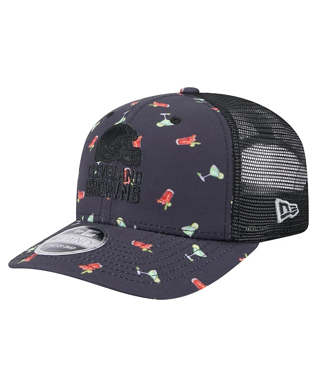 New Era Men's Navy/Black Cleveland Browns Adventure Drinks Pattern 9SEVENTY Stretch-Snap Hat
