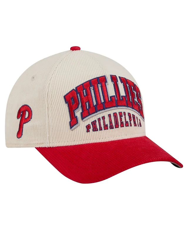 New Era Men's Cream/Red Philadelphia Phillies Sided Corduroy 9FORTY A-Frame Adjustable Hat