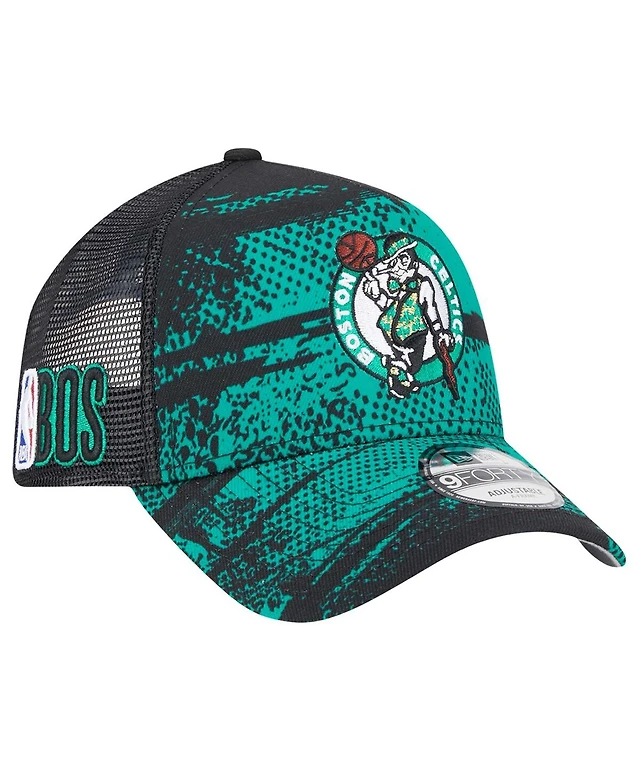 New Era Men's Black/Kelly Green Boston Celtics Tip Off A-Frame Trucker 9FORTY Adjustable Hat