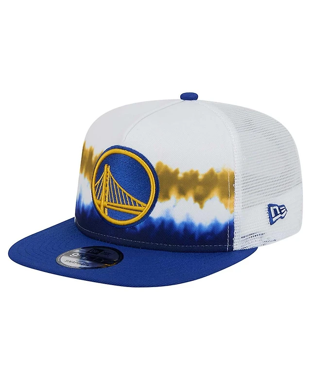 New Era Men's White/Royal Golden State Warriors Dip-Dye 9FIFTY A-Frame Trucker Snapback Hat