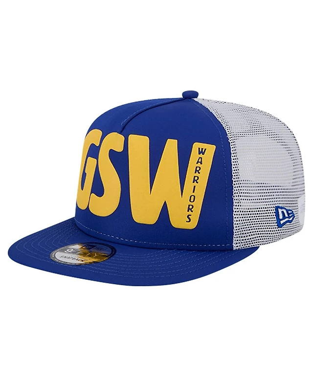 New Era Men's White/Royal Golden State Warriors Court Sport Foam A-Frame 9FORTY Adjustable Trucker Hat