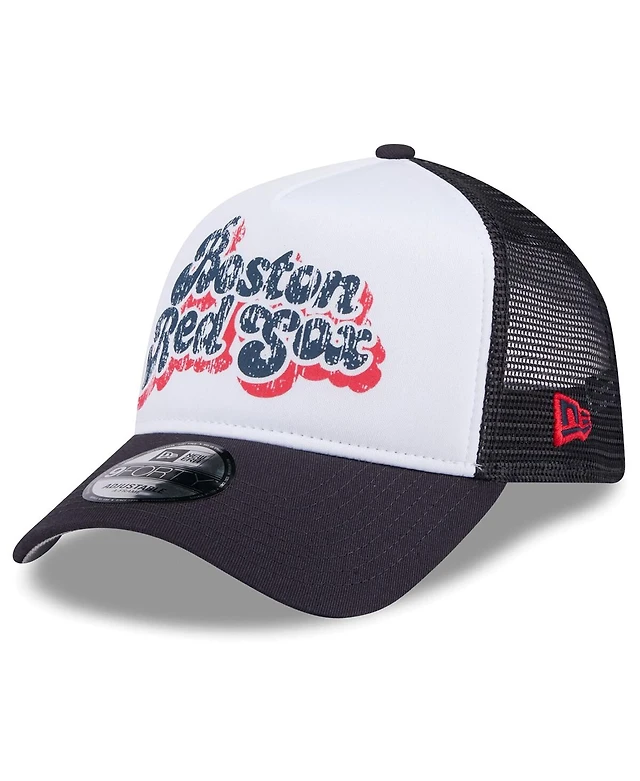 New Era Women's White/Navy Boston Red Sox Throwback Team Foam Front A-Frame Trucker 9Forty Adjustable Hat