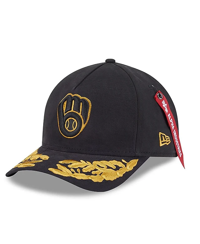 New Era Men's Black Milwaukee Brewers A-Frame 9FORTY Adjustable Hat