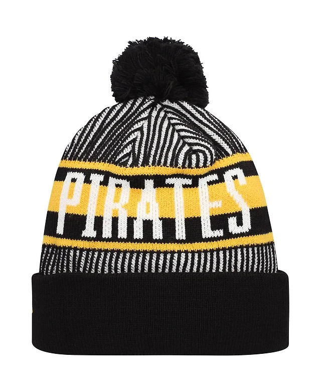 Men's New Era Black Pittsburgh Pirates Striped Cuffed Knit Hat with Pom