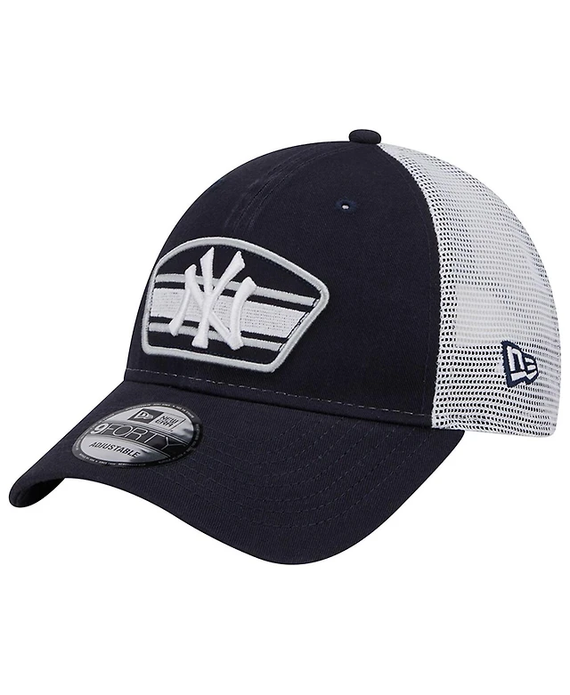 Men's New Era Navy, White New York Yankees Logo Patch 9FORTY Trucker Snapback Hat