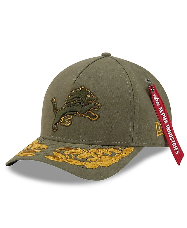 New Era x Alpha Men's Industries Olive Detroit Lions A-Frame 9FORTY Adjustable Hat
