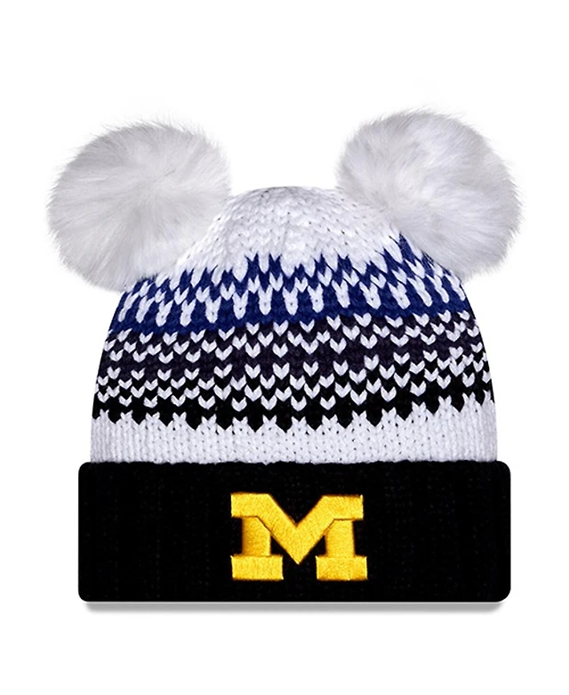 New Era Women's Navy Michigan Wolverines Double Pom Print Cuffed Knit Hat