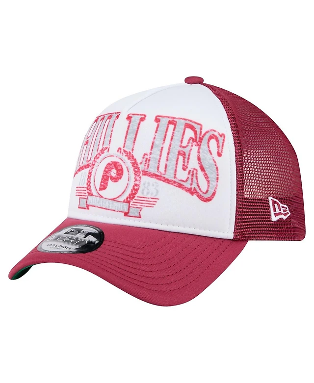 New Era Men's Red Philadelphia Phillies Distressed 9FORTY A-Frame Adjustable Trucker Hat