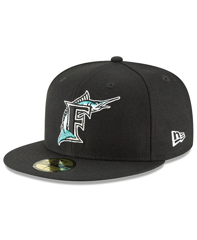 Men's New Era Black Florida Marlins Cooperstown Collection Wool 59FIFTY Fitted Hat