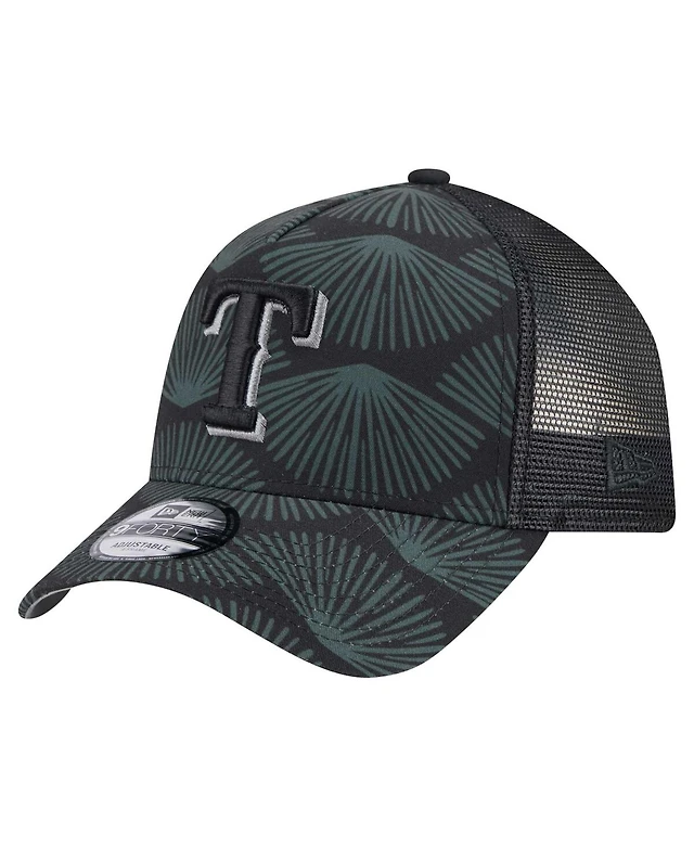 New Era Men's Black Texas Rangers 9FORTY A-Frame Trucker Adjustable Hat