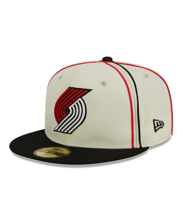 New Era Men's Cream/Black Portland Trail Blazers Piping 2-Tone 59FIFTY Fitted Hat