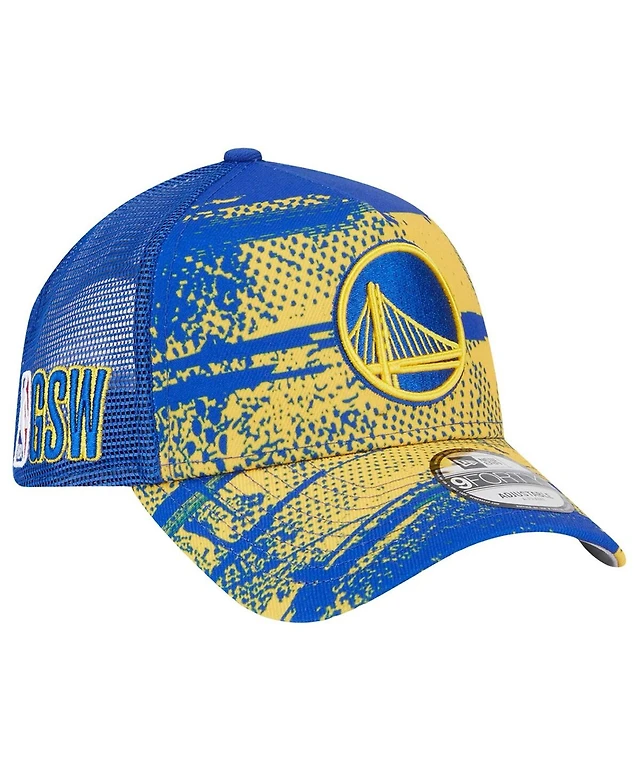 New Era Men's Royal/Gold Golden State Warriors Tip Off A-Frame Trucker 9FORTY Adjustable Hat